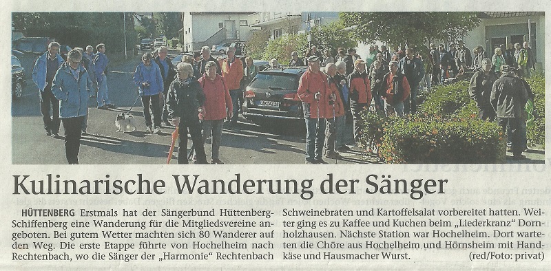 Kulinarische Wanderung - Besondere Aktion des Sängerbundes Hüttenberg-Schiffenberg