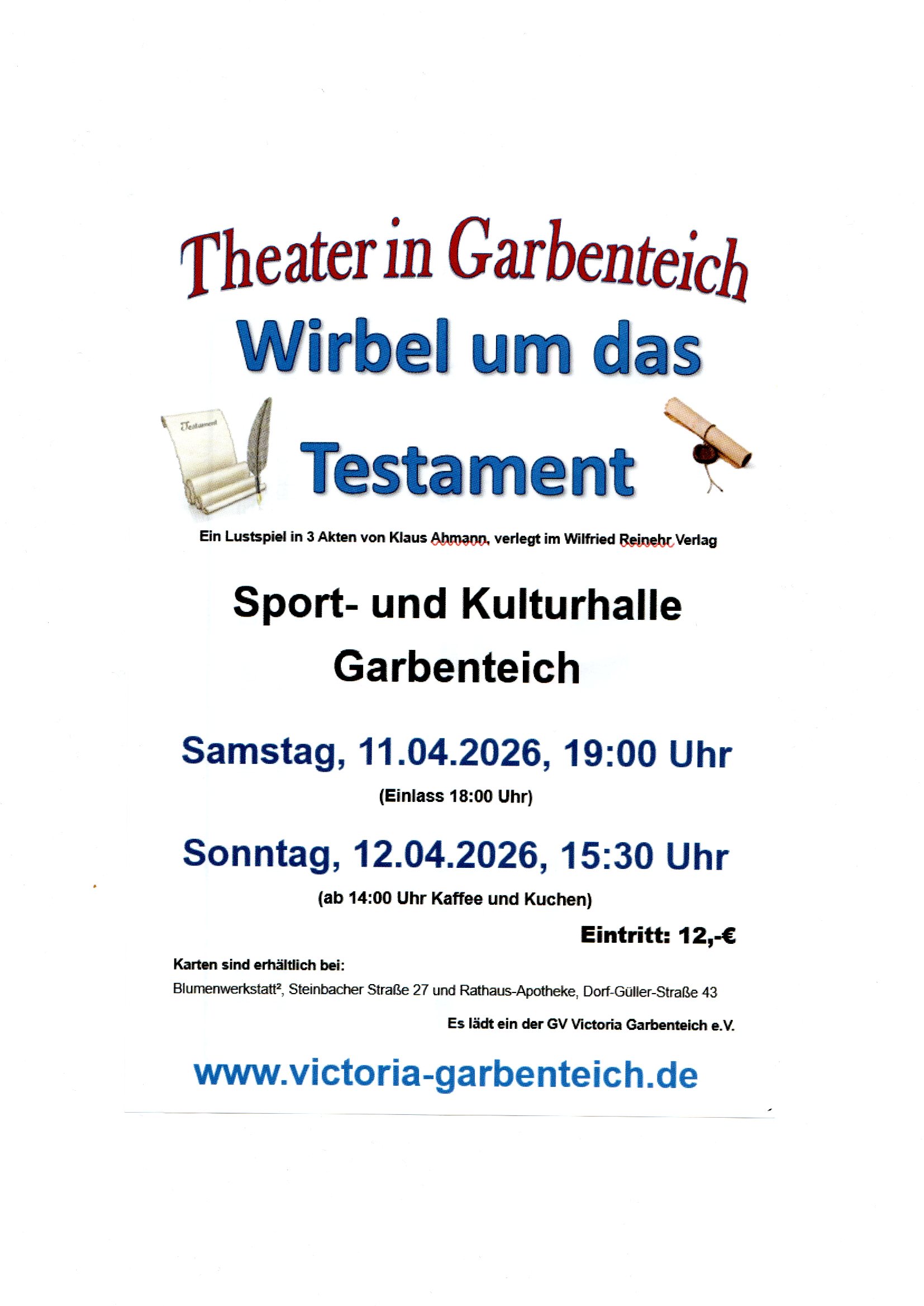 11.04. und 12.04.2026 Theaterveranstaltung der "Victoria" Garbenteich mit dem Titel:
